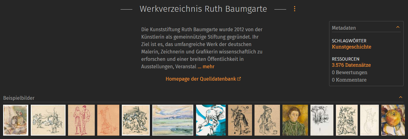 The work of German painter, illustrator, and graphic artist Ruth Baumgarte comprises 3,576 records, which can now be searched via prometheus in the image database “Werkverzeichnis Ruth Baumgarte, Ruth Baumgarte Art Foundation” artist was born in 1923 and studied painting and graphic design at the Berlin University of the Arts from 1941 to 1944. In addition to paintings, watercolors, and drawings, her work consists of an extensive collection of illustrations. These include over 100 works in bold colors, created during her numerous trips to Africa beginning in 1960.