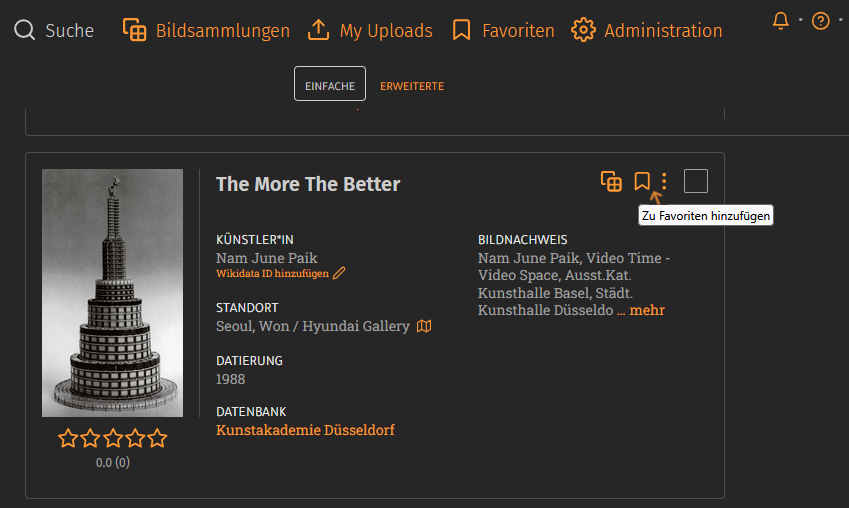 As before, you can add individual images or entire image collections to your favorites. The selection process is easier: simply click on the corresponding icon in the respective data record …