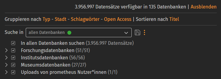 You know prometheus combines a large number of different databases under one interface, don’t you? By default, your search term will be searched in all image databases (green dot).